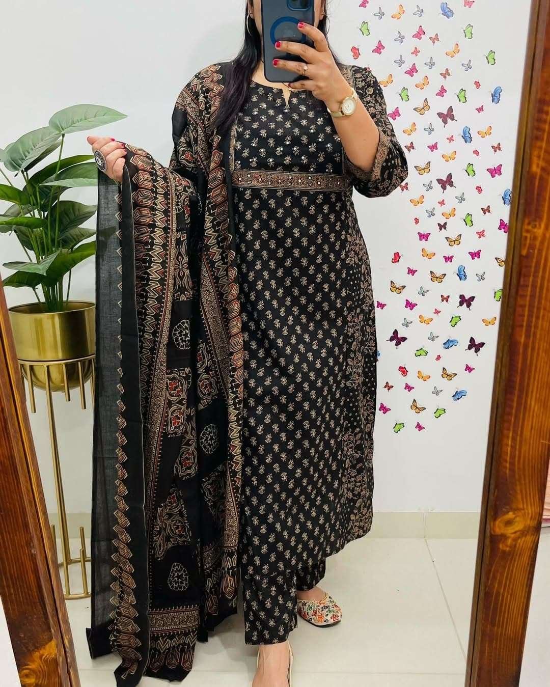 Be the first to review “Stylish Hand worked Neck Cotton Kurti Pant Set with Dupatta!”